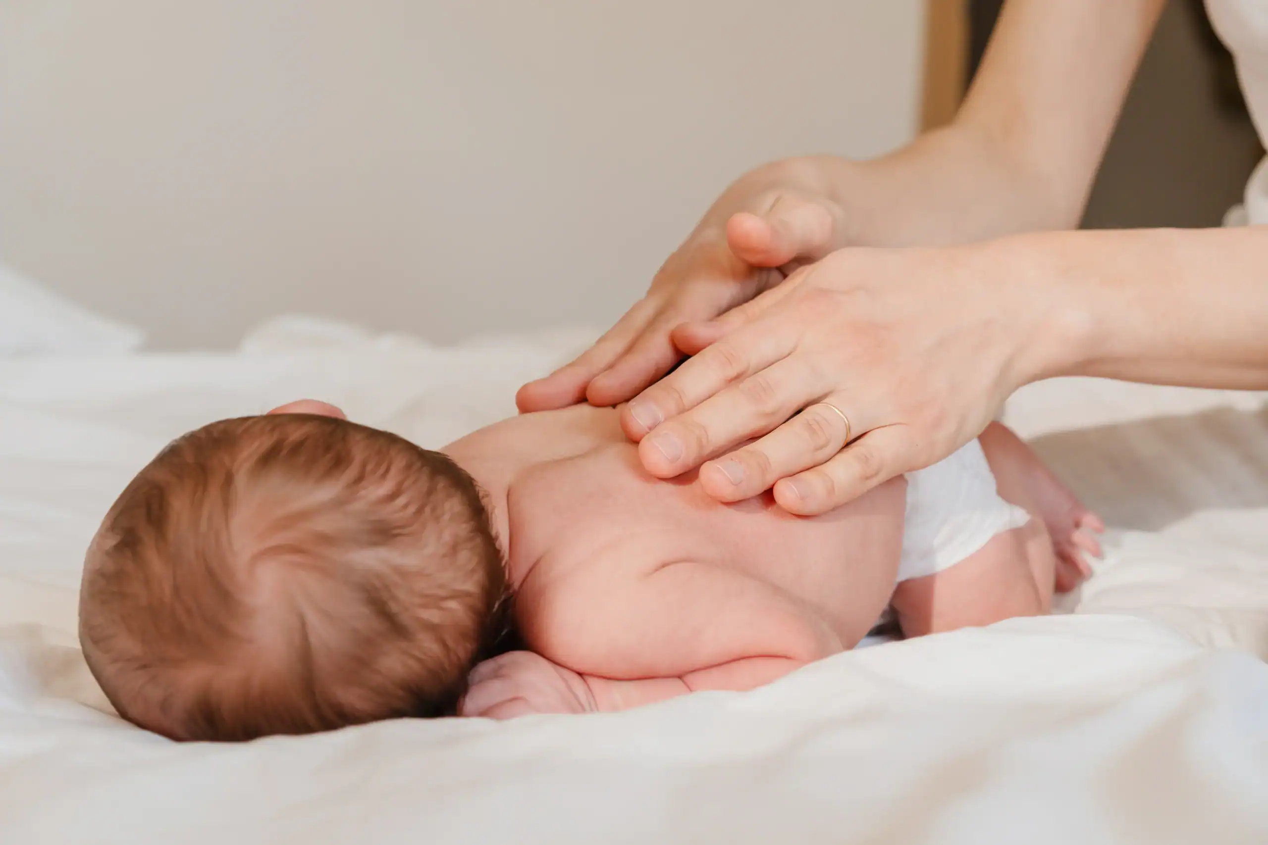 Your baby will lie on a padded table or in your arms, depending on what’s most comfortable. We use our fingertips to apply precise, controlled pressure to specific points along your baby’s spine, usually focusing on the upper neck and mid-back areas where nerve interference commonly affects digestion.